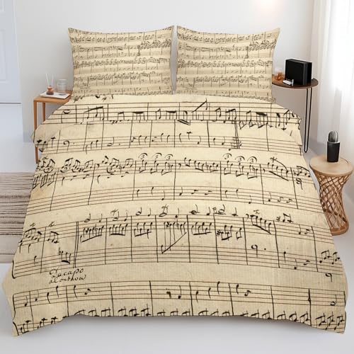 Générique Housse de Couette 140x200 Rétro Musique - Parure de Lit Motif Industriel Réversible avec 2 Taies d'oreiller 65x65, Microfibre Ultra Douce avec Fermeture Éclair - 3 Pièces P2c326
