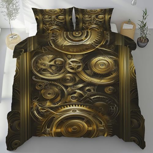 Sshjfeu Parure de Lit Steampunk Industriel pour Enfant, Housse de Couette Réversible 90x190 Gear Metal Vintage Médiéval 1 Personne avec 2 Taie d'oreiller 65x65 cm, Ensemble de Literie Doux