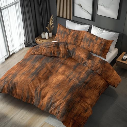 Generisch Parure De Lit Industriel Style 220x240 Adulte Enfant, Housse De Couette Vintage Orange 2 Person avec Fermeture éclair, 2 Taie d'oreiller, Linge De Lit 100% Microfibre
