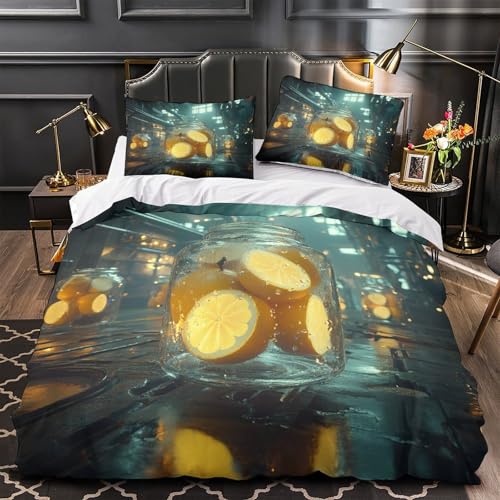 QIAVXZIP bocaux d'agrumes Impression 3D 3 pièces Housse de lit Style rétro Industriel Housse de Couette Microfibre Respirant Fermeture éclair pour Filles Hommes Adultes King(220x240cm)