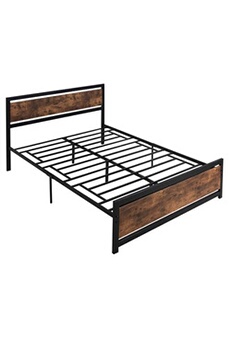 Lit double design industriel - tête de lit, pied de lit et sommier - dim. 195L x 144l x 103H cm - compatible matelas 190L x 140l cm - acier noir MDF