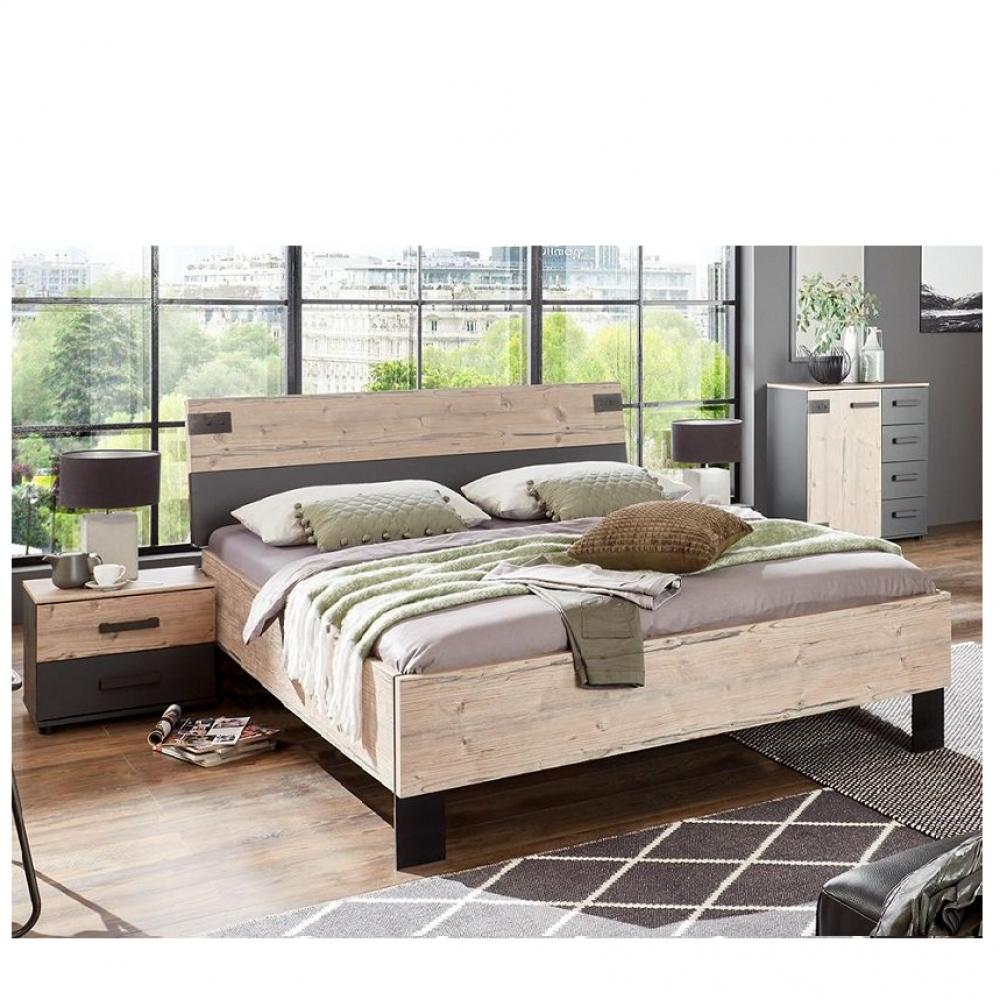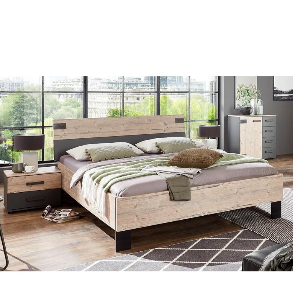 Lit style industriel VERNON 180 x 200 cm pin argenté vieilli et graphite