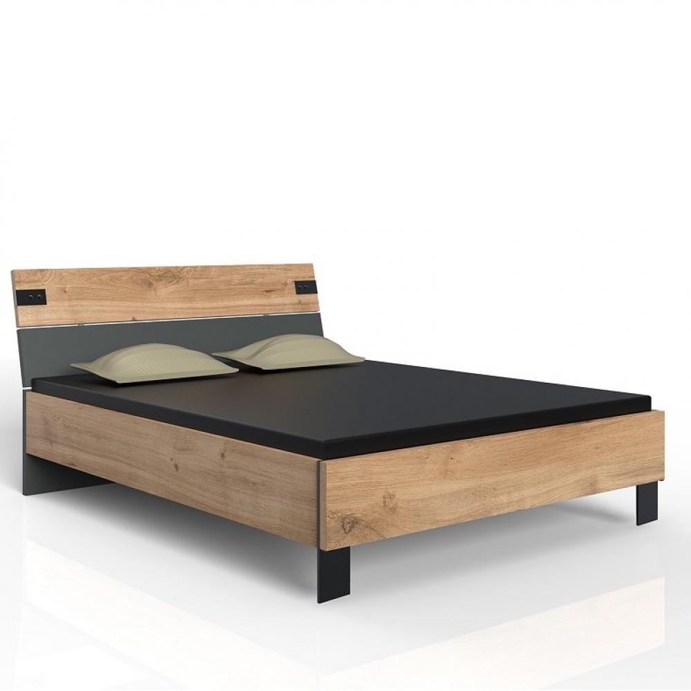 Lit style industriel VERNON 160 x 200 cm chêne poutre et graphite