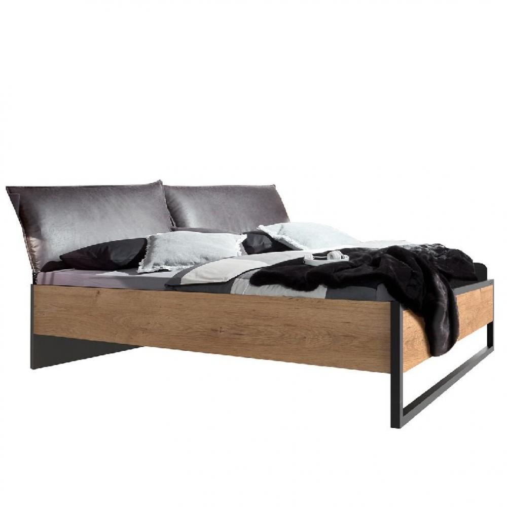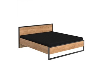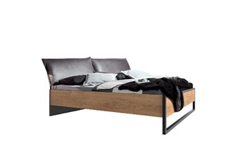 Lit adulte style industriel chêne/gris métal Oscario Chêne/gris métal