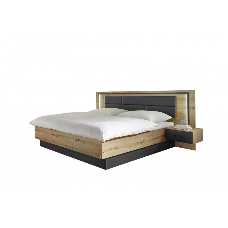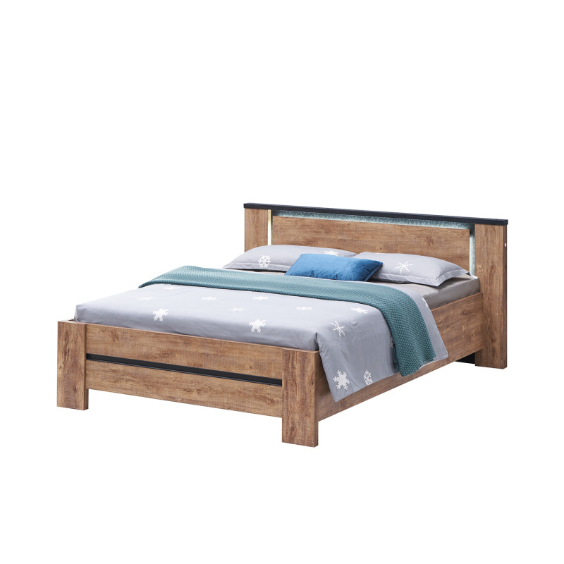 Lit adulte style industriel avec Led chêne/noir Esperance Chêne/noir