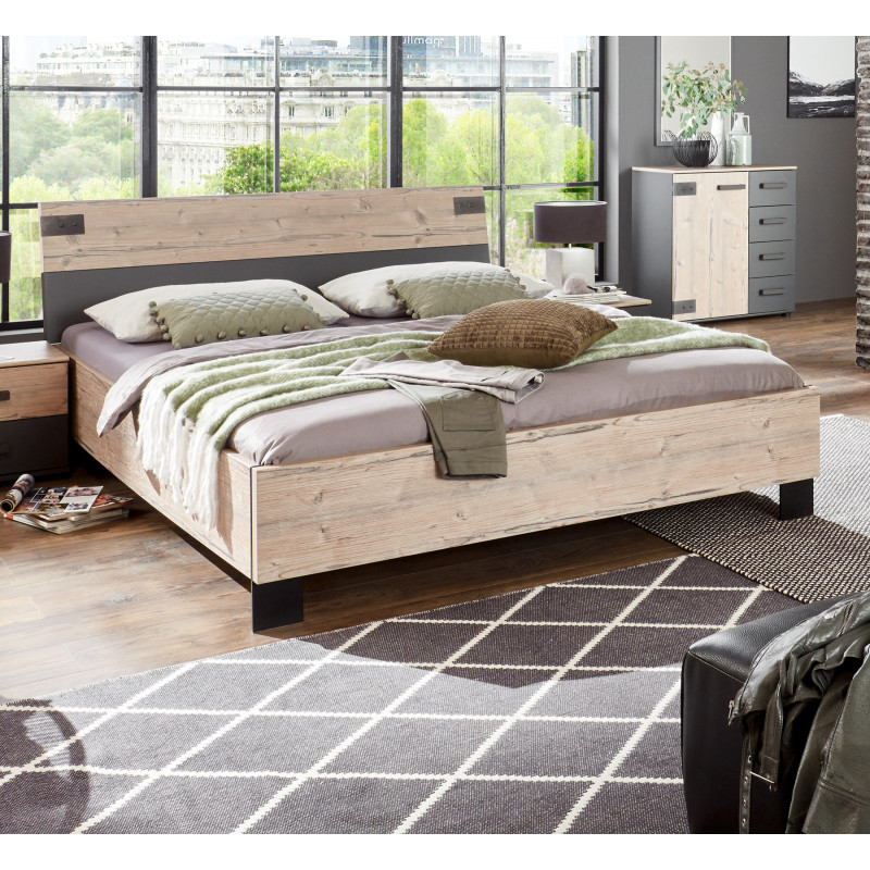 Lit adulte industriel chêne/anthracite Michigan I Chêne