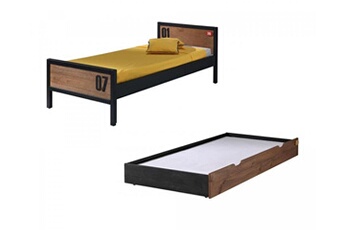 Lit Junior Style Industriel Couchage 90x200cm 1 Tiroir De Rangement Bout Lit Lofty