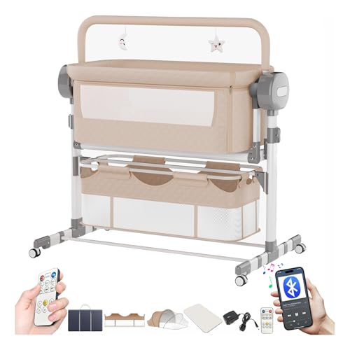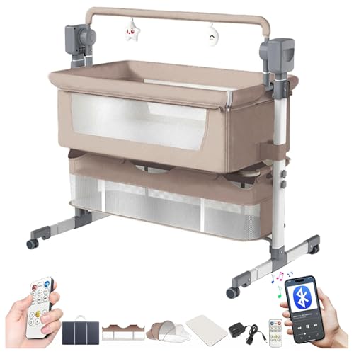 Sianldcone Électrique Bluetooth Intelligent Lit Cododo Bebe, Multifonctionnel Cododo Bebe, Réglable en Hauteur Lit (601 Khaki)
