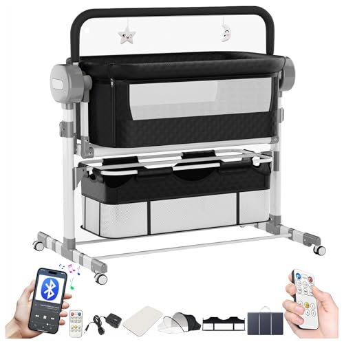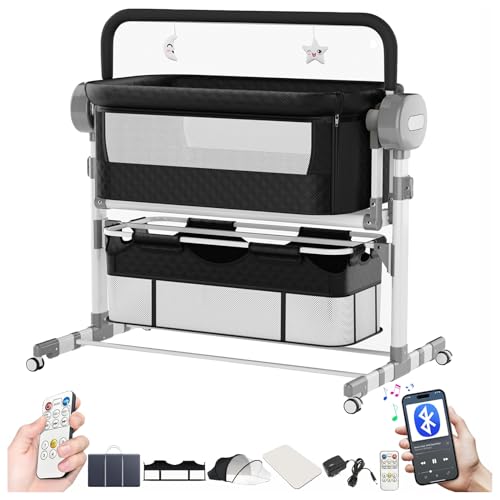 Sianldcone Électrique Bluetooth Intelligent Lit Cododo Bebe, Multifonctionnel Cododo Bebe, Réglable en Hauteur Lit Cododos (608 Black)