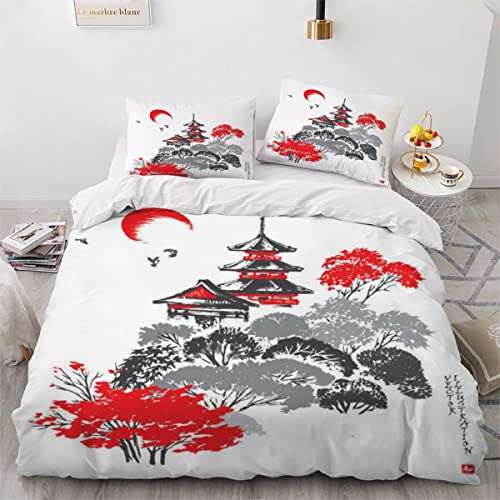 Générique Housse de Couette 140x200 Asiatique, 1 Personne - Parure de Lit Motif Japonais, 1 Taies d'oreiller 65x65, Zippée, Microfibre Doux, Decoration & Cadeaux