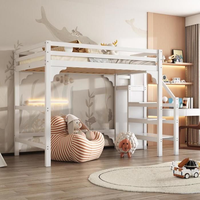 Lit mezzanine 140x200 avec escalier