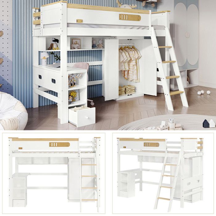 Lit mezzanine avec armoire