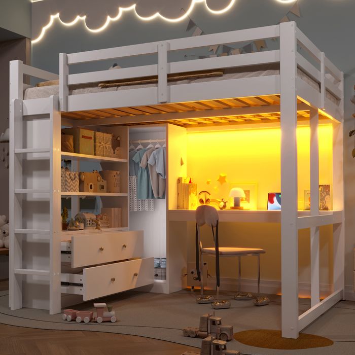 AccueilMaisonDécoration intérieureMeublesLits & MatelasCadres de litLit mezzanine avec armoire et bureau