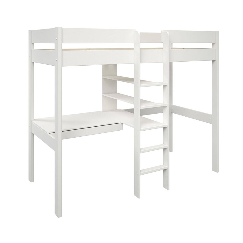 vidaXL Loftsäng med skrivbord&bänkar 90x200 cm massiv furu