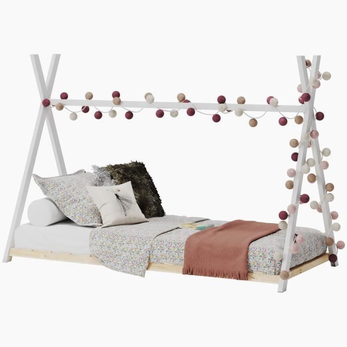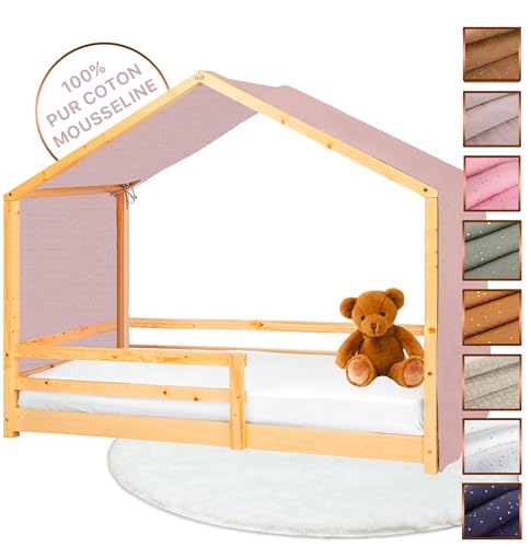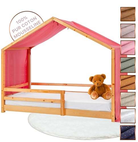 Lit cabane SILA 90x190 cm lit simple enfant 1 place type Montessori en pin massif finition naturelle
