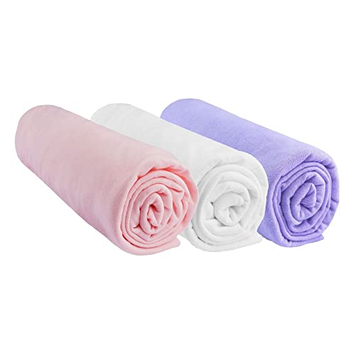 Lot de 3 Draps Housse 60x120 cm Lit Bébé, Berceau, Lit Parapluie 60 x 120 | 100% Coton | Rose Blanc Parme | Extensible Respirant | Sommeil sain | Marque Easy Dort | Oeko-Tex | Fabriqué en Europe