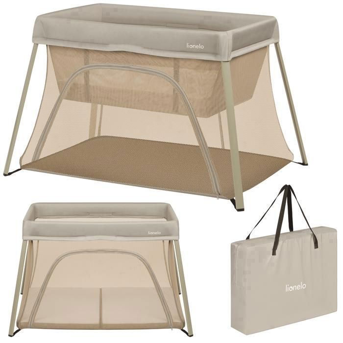 Lit parapluie 3en1 LIONELO Alice - Ultra légère - Lit bébé - Parc bébé - 3cm matelas - Sac inclus - Ouverture zippée - Beige