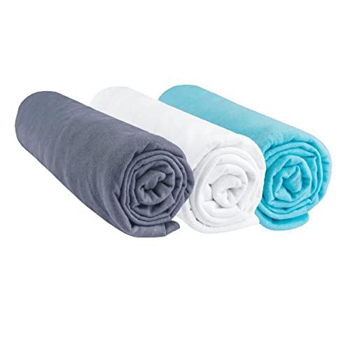 Lot de 3 Draps Housse 60x120 cm Lit Bébé, Berceau, Lit Parapluie 60 x 120 | 100% Coton | Gris Blanc Turquoise | Extensible Respirant | Sommeil sain | Marque Easy Dort | Oeko-Tex | Fabriqué en Europe