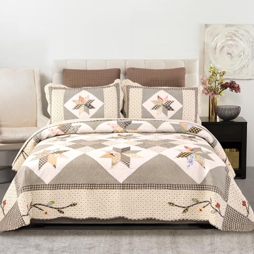 YAYIDAY YaYi Parure de lit imprimée 3 pièces 100% Coton avec Couvre-oreillers réversible en Patchwork matelassé pour Toutes Les Saisons (Style #1)