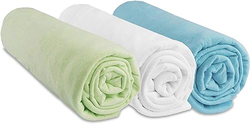 Easy Dort Lot de 3 Draps Housse 60x120 cm Lit Bébé, Berceau, Lit Parapluie | 100% Coton Jersey | Anis Blanc Turquoise | Extensible | Sommeil sain |Oeko-Tex | Fabriqué en Europe