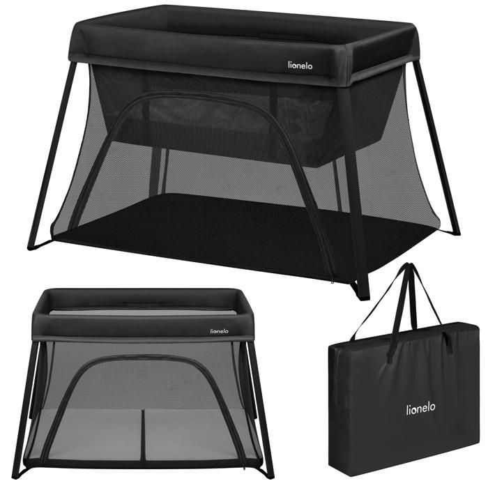 Lit parapluie 3en1 LIONELO Alice - Ultra légère - Lit bébé - Parc bébé - 3cm matelas - Sac inclus - Ouverture zippée - Noir