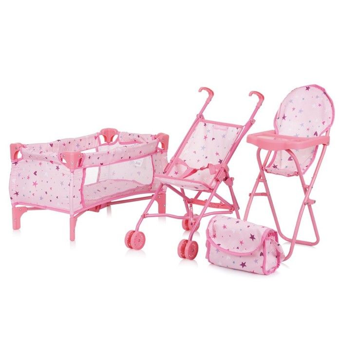 Trixy ensemble 3en1 pour poupée poussette pliable avec sac à langer chaise haute lit parapluie jouet enfant 3-6 ans étoiles