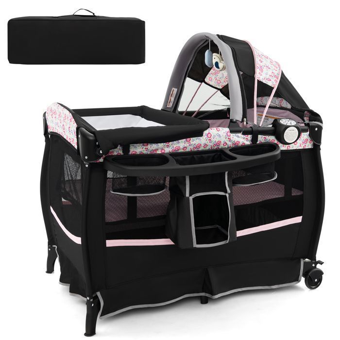 3 en 1 lit parapluie pour bébés 0-36 mois avec arceau de jeu, centre musical et table à langer hauteur réglable