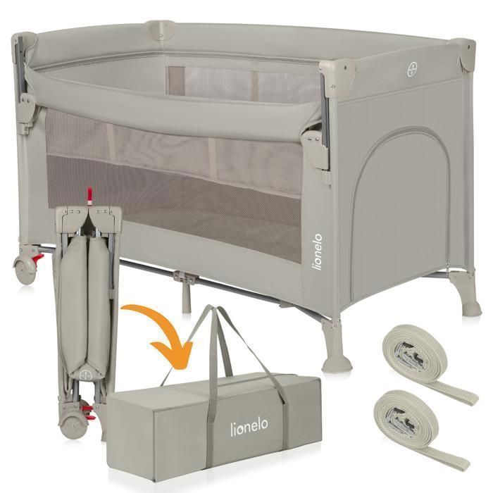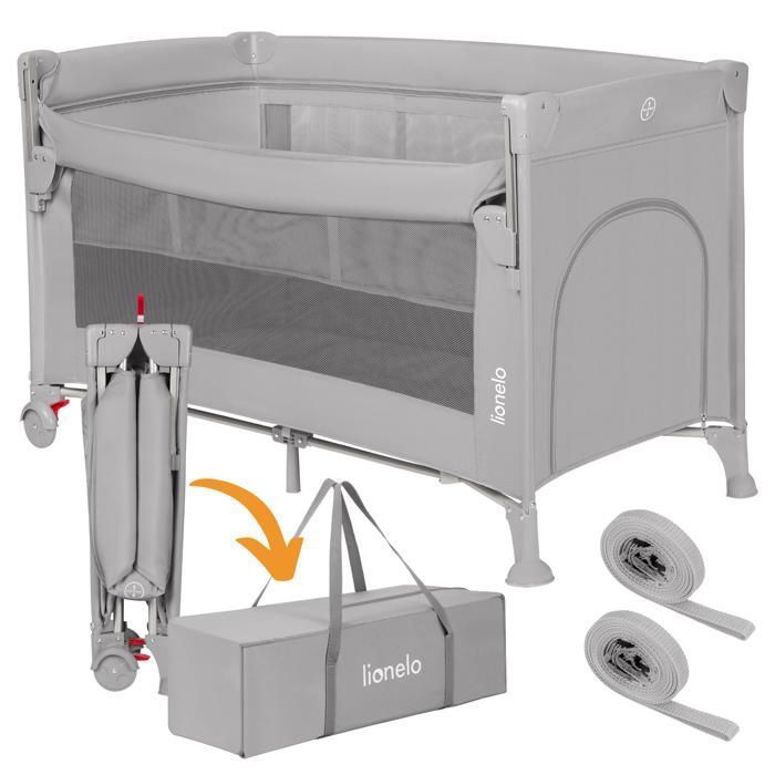 Lit parapluie 3en1 LIONELO Ellen - Lit cododo - Parc bébé - Matelas haute densité - 2 x Roulettes - 0-36 mois - Gris