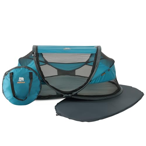Deryan lit Parapluie Parapluie Bébé avec Matelas - pour Depuis la Naissance Jusqu'à 2,5 Ans - Pop Up Tente pour Bébé Montée en 2 Minutes - Moustiquaire & Sac de Voyage Inclus - 120x75x50cm (Océan)