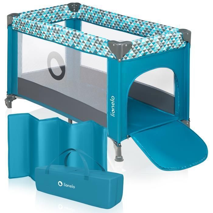 Lit parapluie compact 2en1 LIONELO Stefi - Parc bébé - 0-36 mois - Sac inclus - Pliage Rapide - 2 x Roulettes - Bleu multicolore