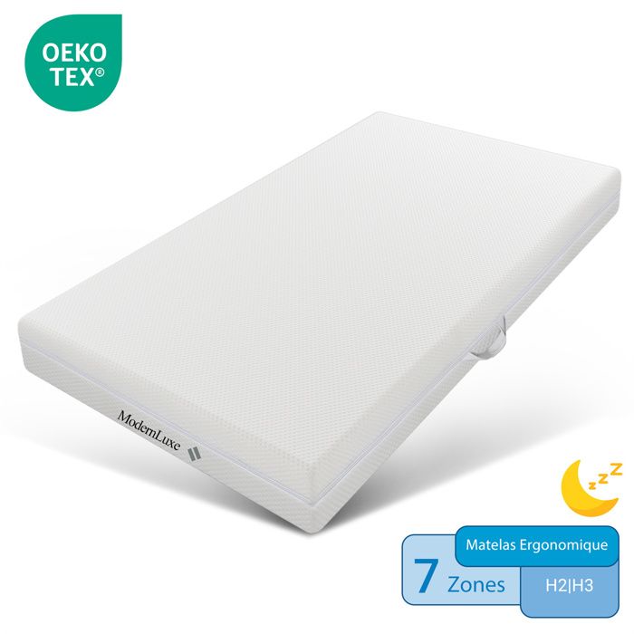 Matelas 90x200 pour Lit Adulte Ado Enfant- Mousse Froide - Matelas Réversible - 20 cm Epaisseur - Fermeté H3 H2 - Amovible