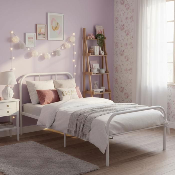 FurnitureR Lit en Métal Blanc 90x190 cm Cadre de Lit Simple pour Enfant Ado ou Adulte Structure Robuste et Moderne
