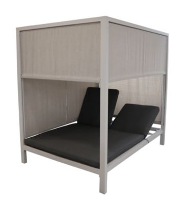 Lit de relaxation extérieur Leather 2 places avec rideaux réglables crème