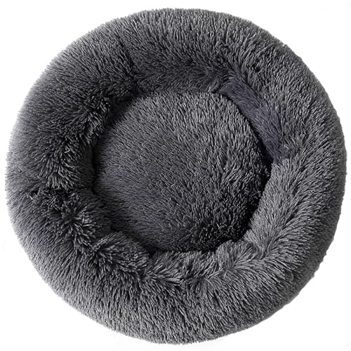 UUEMB Lit apaisant en Forme de Beignet pour Chien et Chat - 50 cm - Lit Rond Doux Lavable et Chaud pour Un Meilleur Sommeil (Gris foncé)