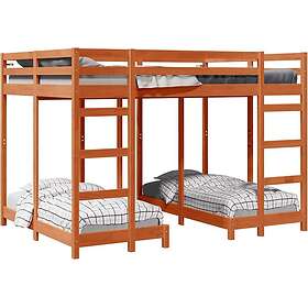 vidaXL Våningssäng 90x200/140x200 cm vaxbrun massiv furu