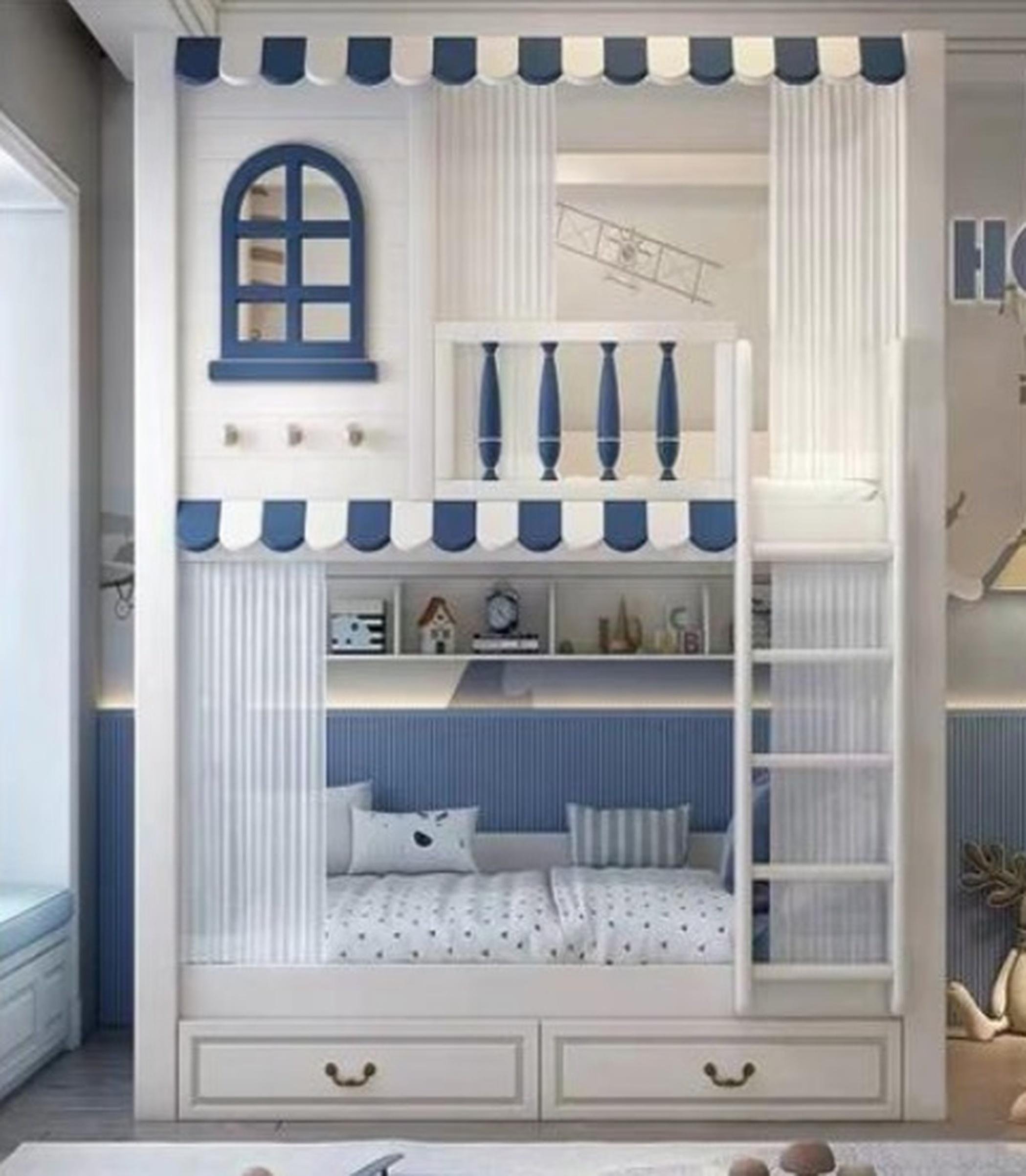 Plaque épaissielit superposé avec toboggan et échelle dangle à trois étages lit maison avec dispositif anti - chute lit bébé c
