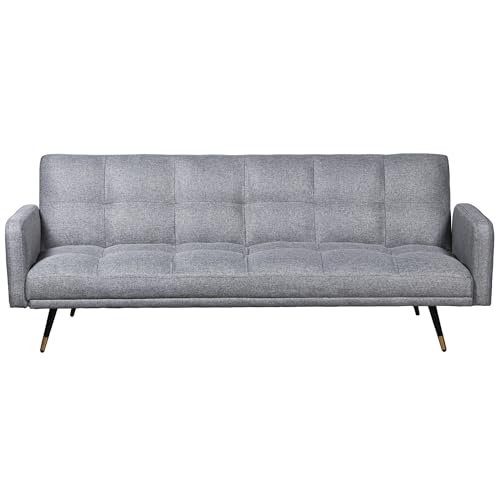 DRW Canapé lit 3 places en polyester avec pieds en métal gris, noir et doré 193 x 83 x 75 cm