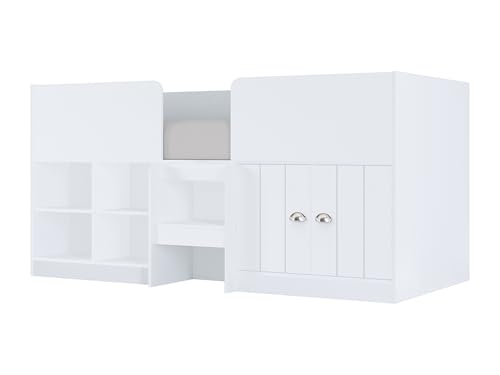 Vente-unique - Lit mi-Hauteur 90 x 190 cm avec rangements - Coloris : Blanc - BOUTANIO - pour Enfant