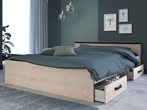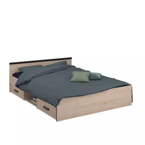 Vente-unique - Lit avec rangements 140 x 190 cm - 2 tiroirs et 1 Niche - Coloris : Naturel - Pablo