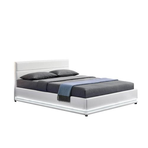 Structure de lit LED avec rangements 140 x 190 cm blanc NEWYORK