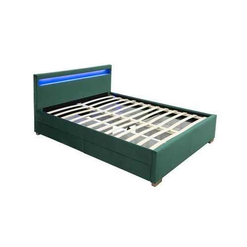 Structure de lit en velours vert avec rangements et LED intégrées 140x190 cm ENFIELD