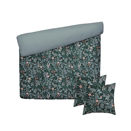 Pure Cotton Parure de lit 3 Pièces 2 Personnes - Housse de Couette 260x240 cm et 2 Taie Oreiller 63x63 cm – 100% Satin de Coton, 80 Fils - Certifié Oeko-TEX® – Jardin Suspendu – Vert
