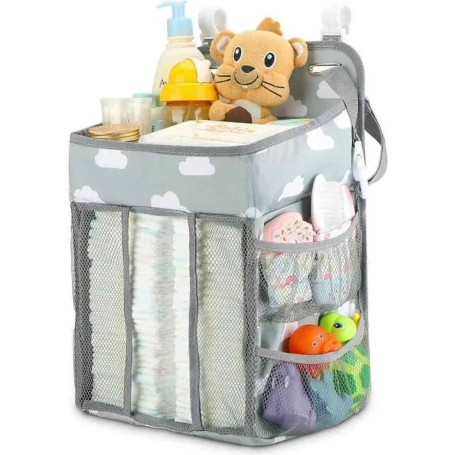 IUHRIE Organisateur Suspendu,pour Lit Bébé,Sac de Rangement Multi Poches pour Couches,Vêtements et Jouets,Organisateur de Chambre d'Enfant Réglable,Compatible avec Table à Langer et Lit d'Appoint