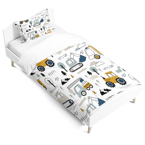 LLTTEER Housse de Couette de Voiture de Dessin Animé Ensemble de literie de Construction Parure de lit Excavatrice Ingénierie Voiture Motif avec taie d'oreiller 40x60cm (Bagger A, 90 x 190cm)