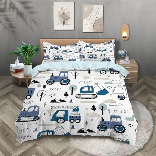TKCQX Housse de Couette Enfant Voiture de Dessin Animé Parure de Lit 90x190 Enfant Garçon Fille Adulte Tracteur Excavateur Housse de Couette en Microfibre avec Taie d'oreiller 65x65 cm