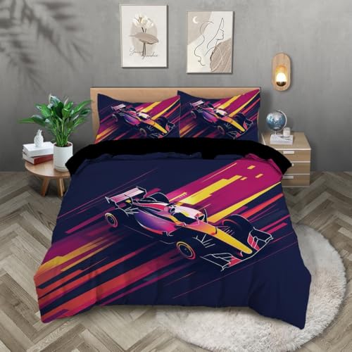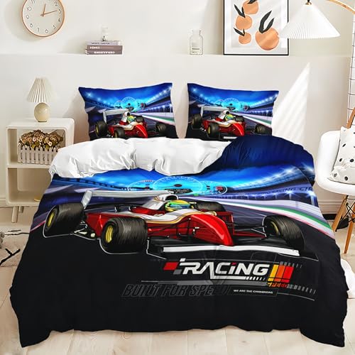 TKCQX Housse de Couette Voiture de Sport Housse de Couette 90x190 Enfant Garçon Fille Adulte Course de Formule Parure de Lit 1 Personne en Microfibre avec Taie d'oreiller 65x65 cm