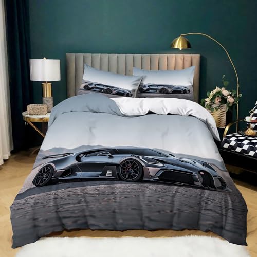 LLSZAHD Parure De Lit 90x190 Voiture de Sport Grise Parure De Lit 1 Personne avec Fermeture éClair, Housse De Couette 90x190cm avec 1 Taie d'oreiller 65x65cm