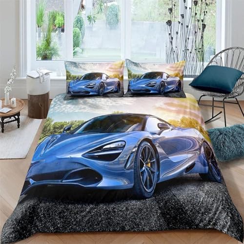 CozyRest Enfants Adulte Housse de Couette 90x190 cm Voiture De Sport Motif Parure de Lit Microfibre avec Fermeture Eclair, Literie avec 1 taie d'oreiller 65x65