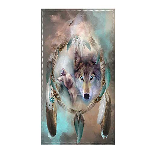 Serviette de Plage Homme Enfant Ado Garçon xxl Microfibre 3D Attrapeur de rêves Loup Très Grandes Serviette de Bain Voyage Piscine Bain de Soleil Couverture de Canapé Lit,marron (70x150cm)