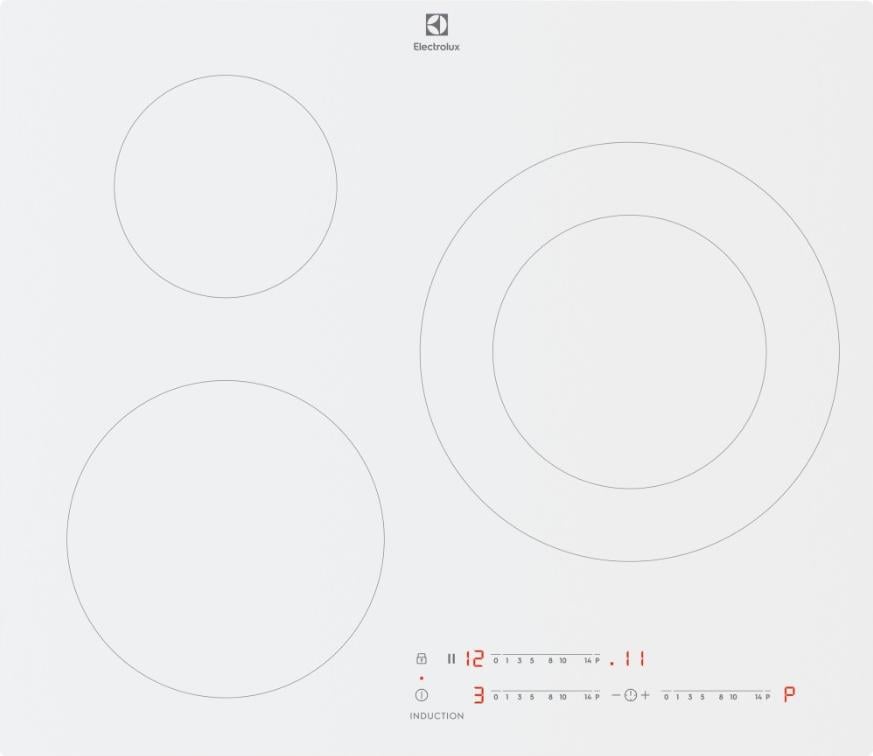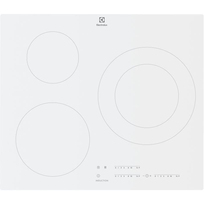 ELECTROLUX LIT60342CW - Table de cuisson à induction - 3 zones - 7350 L - L 59 x P 52 cm - Revêtement verre - Blanc
